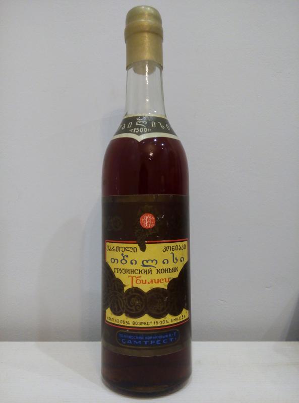 Грузинский коньяк Тбилиси производства Тбилисского коньячного завода Самтрест, разлит в 1980 года из купажа коньячных спиртов выдержки 15-20 лет, крепость 43%, группа коньяков КС (коньяк старый), произведён по ГОСТ 13741-78. На данный момент возраст коньяка 55 лет, цена 25 000 руб. Пишите на почту luolyalu@gmail.com