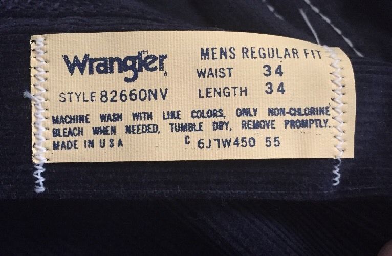 Абсолютно новые классические мужские темно-синие вельветовые джинсы Wrangler 8266ONV, сделаны в США в начале 80-х, молния Сапожек made in USA, заклепки Wrangler спереди и на задних карманах. Made in USA - старые запасы.