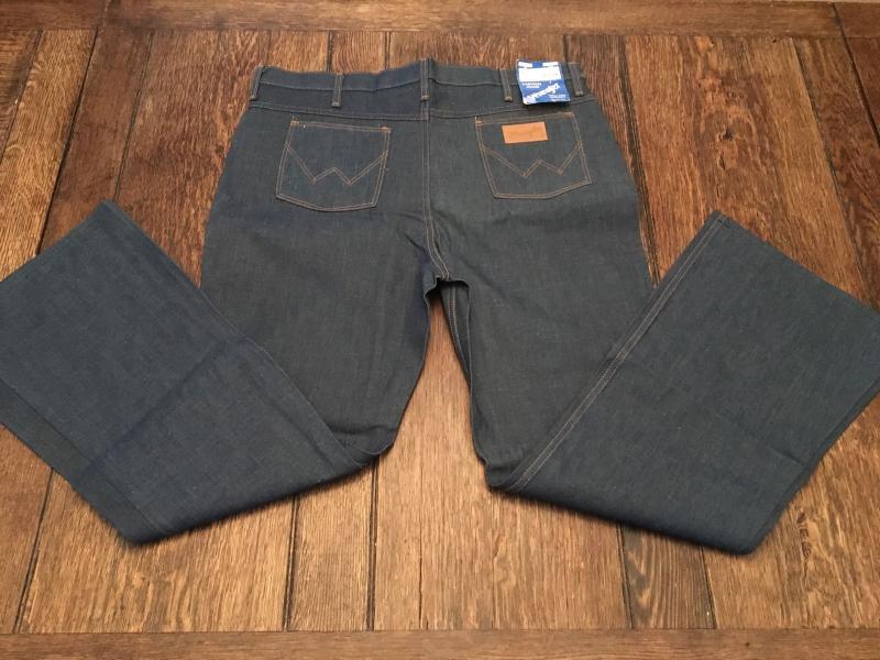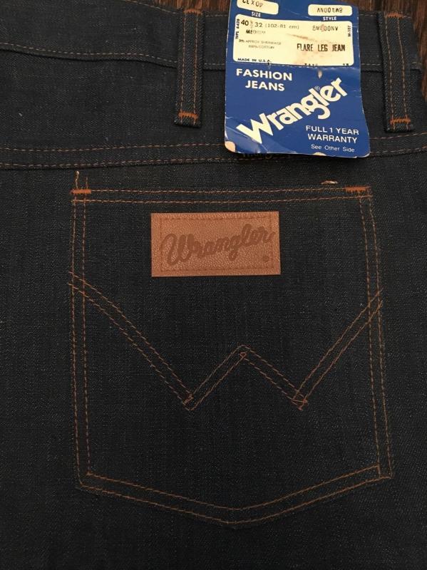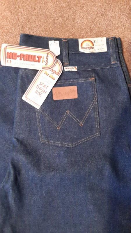11. Абсолютно новые отличные классические мужские джинсы Wrangler 945DEN No fault, сделаны в США в 70-х , тяжелый 100%cotton 14 3/4 OZ, made in USA, кожаный патч, двойной боковой шов, молния Scovil made in USA. материал - broken twill(елочка). Made in USA - старые запасы