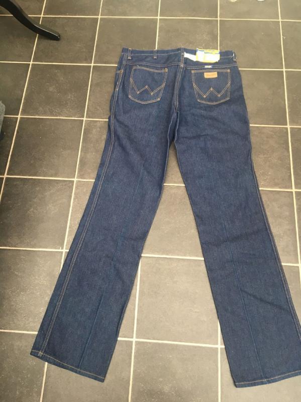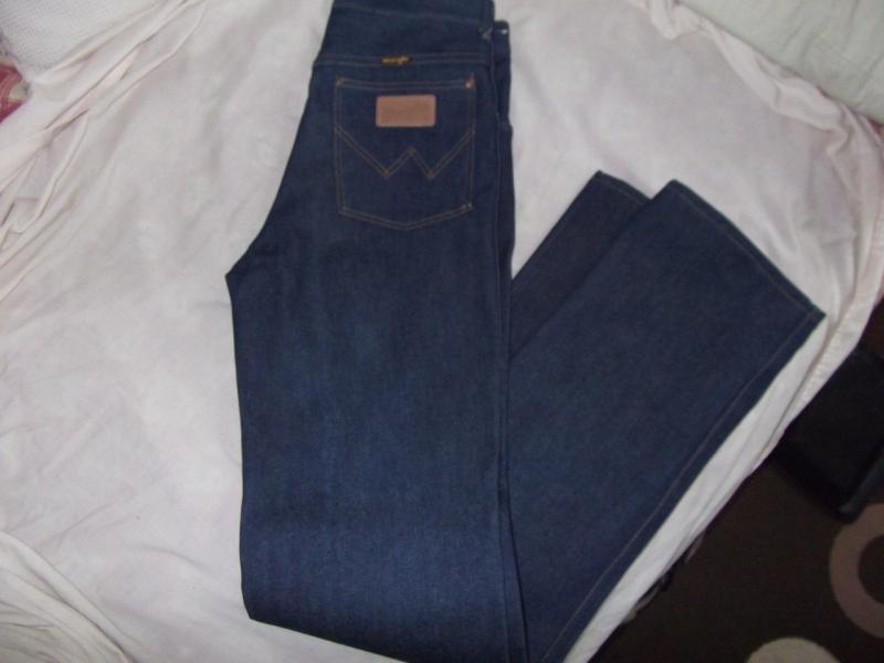 Прямой фит (Regular Boot cut), высокая посадка, жесткие(Rigid), не стиранные. Модель/Цвет - 110280U, чернильные (Dark Blue Indigo),материал Broken twill(елочка) . Размер US - W34хL34 Российский размер - 48/50; Реальные замеры: полуталия - 42 см; бедро - 28 см; передняя посадка - 29 см; задняя посадка - 39 см; внутренний шов - 86 см; длина - 113 см; колено - 22 см; низ штанины - 27 см. 29. Абсолютно новые классические мужские джинсы Wrangler, модель 11, сделаны в Шотландии, начало 80-х, тяжелый 100% cotton, 14OZ, made in Scotland, колокол на заклепках, номерная пуговица, кожаный патч. Made in Scotland - старые запасы. Прямой фит (Regular Straight leg), высокая посадка, жесткие(Rigid), не стиранные. Модель/Цвет - 11 0364, чернильные (Dark Blue Indigo), материал Broken twill(елочка). Размер US - W34хL34 Российский размер - 48/50; Реальные замеры: полуталия - 42 см; бедро - 28,5 см; передняя посадка - 29 см; задняя посадка - 40 см; внутренний шов - 80 см; длина - 104 см; колено - 22 см; низ штанины - 22 см. 30. Абсолютно новые классические мужские джинсы Wrangler, модель 11, сделаны в Береге Слоновой Кости, в начале 80-х , тяжелый 100%cotton 14OZ, made in Ivory Coast, колокол на заклепках, клепаный малый карман, номерная пуговица, кожаный патч. Made in Ivory Coast - старые запасы. Прямой фит (Regular Straight leg), высокая посадка, жесткие(Rigid), не стиранные. Модель/Цвет - 11 0546, чернильные (Dark Blue Indigo), материал Broken twill(елочка). Размер US - W42хL32 Российский размер - 56; Реальные замеры: полуталия - 50 см; бедро - 34 см; передняя посадка - 34 см; задняя посадка - 45 см; внутренний шов - 83 см; длина - 117 см; колено - 23 см; низ штанины - 23 см. 31. Абсолютно новые классические мужские джинсы Wrangler, модель 11, сделаны в Береге Слоновой Кости, в начале 80-х , тяжелый 100%cotton 14OZ, made in Ivory Coast, колокол на заклепках, клепаный малый карман, номерная пуговица, кожаный патч. Made in Ivory Coast - старые запасы. Прямой фит (Regular Straight leg), высокая посадка, жесткие(Rigid), не стиранные. Модель/Цвет - 11 0546, чернильные (Dark Blue Indigo), материал Broken twill(елочка) Размер US - W36хL34 Российский размер - 52; Реальные замеры: полуталия - 44 см; бедро - 30 см; передняя посадка - 30 см; задняя посадка - 40 см; внутренний шов - 90 см; длина - 120 см; колено - 23 см; низ штанины - 23 см. 32. Абсолютно новые классические мужские джинсы Wrangler, модель 11, сделаны в Береге Слоновой Кости, в начале 80-х , тяжелый 100%cotton 14OZ, made in Ivory Coast, колокол на заклепках, клепаный малый карман, номерная пуговица, кожаный патч. Made in Ivory Coast - старые запасы. Прямой фит (Regular Straight leg), высокая посадка, жесткие(Rigid), не стиранные. Модель/Цвет - 11 0545, чернильные (Dark Blue Indigo), материал Broken twill(елочка) Размер US - W36хL32 Российский размер - 50/52; Реальные замеры: полуталия - 44 см; бедро - 29 см; передняя посадка - 29 см; задняя посадка - 39 см; внутренний шов - 76 см; длина - 102 см; колено - 20 см; низ штанины - 20 см. 33. Абсолютно новые классические мужские джинсы Wrangler, модель 11, сделаны на Мальте в начале 80-х , тяжелый 100%cotton 14OZ, made in Malta, молния Eclair, колокол на заклепках, номерная пуговица, кожаный патч. Made in Malta - старые запасы. Прямой фит (Regular Straight leg), высокая посадка, жесткие(Rigid), не стиранные. Модель/Цвет - 11 0364, чернильные (Dark Blue Indigo), материал Broken twill(елочка) Размер US - W32хL34 Российский размер - 48+; Реальные замеры: полуталия - 40 см; бедро - 27 см; передняя посадка - 29 см; задняя посадка - 39 см; внутренний шов - 90 см; длина - 117 см; колено - 22 см; низ штанины - 22 см. 34. Абсолютно новые классические мужские джинсы Wrangler, модель 925DEN, сделаны в США в начале 70-х , тяжелый 100%cotton 14OZ, молния широкий Talon, made in USA, буквы на обратной стороне пуговицы, кожаный патч. Made in USA - ста