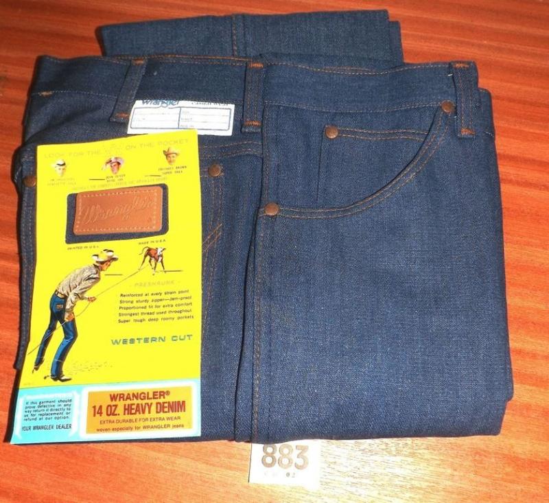 28. Абсолютно новые легендарные мужские джинсы Wrangler, модель 110280U, сделаны в конце 60-х начале 70-х, Blue Bell label, тяжелый blended cotton, 14OZ, молния широкийTalon made in USA, колокол на заклепках, клепаный малый карман, номерная пуговица, кожаный патч. Made in USA - старые запасы.