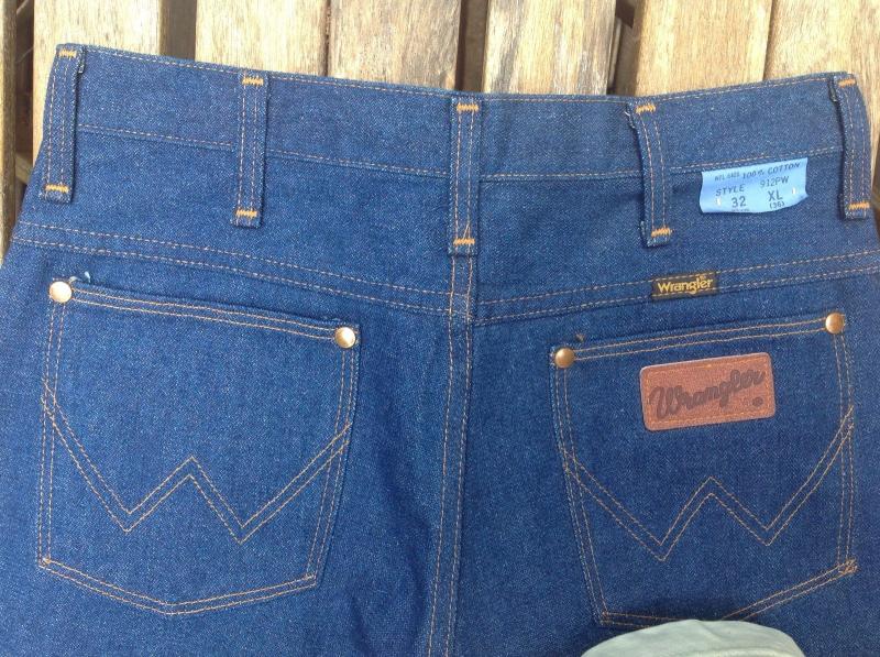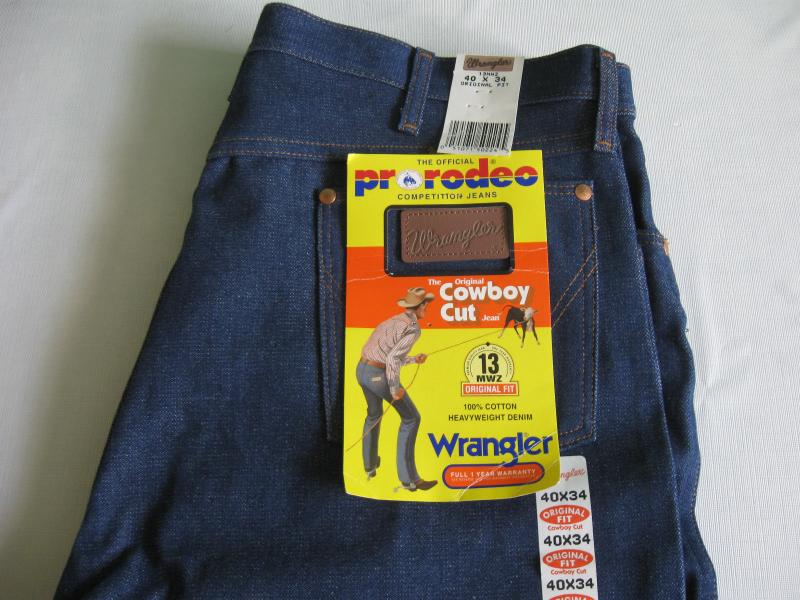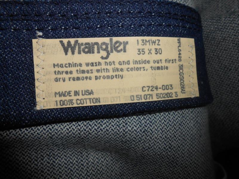 48. Абсолютно новые классические мужские джинсы Wrangler легендарная модель 13MWZ, сделаны в США в cередине 80-х, тяжелый 100%cotton 14 3/4 OZ, made in USA, кожаный патч, медные заклепки, молния сапожек made in USA, материал - broken twil(елочка). Made in USA - старые запасы