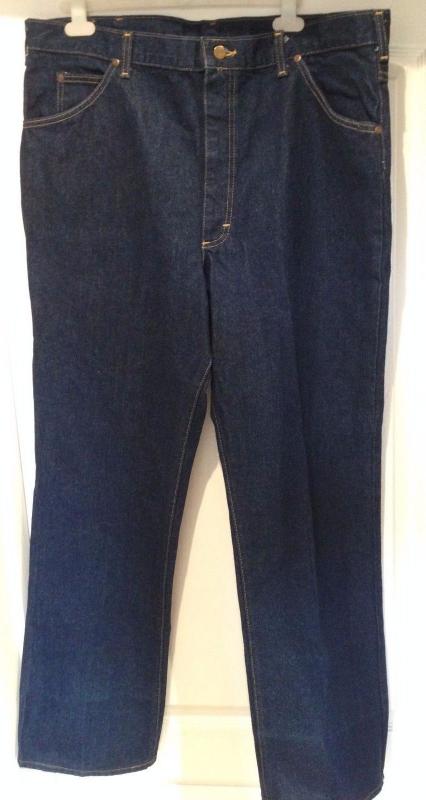 Regular fit, высокая посадка, жесткие(Rigid), не стиранные, цвет- чернильный индиго. Размер по тегу US - W40 L34 Российский размер - 56 Реальные замеры: полуталия - 49,5 см; передняя посадка - 35 см; задняя посадка - 44 см; внутренний шов - 88 см; длина - 121 см; низ штанины - 22 см. Пересыл по России. 49. Абсолютно новые классические мужские джинсы Wrangler, модель 912PW, сделаны в США в начале 80-х , тяжелый 100%cotton 14OZ, тройной боковой шов, молния Ideal made in USA, медные заклепки, кожаный патч. Made in USA - старые запасы. Прямой фит (Regular fit), высокая посадка,жесткие. Модель/Цвет - 912PW, чернильные (Dark Blue Indigo), материал Broken twill(елочка) Размер US - W32хL36 Российский размер - 48/50; Реальные замеры: талия - 38,5 см; передняя посадка - 31 см; задняя посадка - 38 см; внутренний шов - 90 см; длина - 116 см; низ штанины - 20,5 см. Пересыл по России. 50. Новые джинсы Lee riders regular fit, 40х32, сделаны в 90-х, отличный тяжелый 100% cotton 14OZ, заклепки LЕЕ, молния YKK made in USA, кожаный патч, Модель - 200-8989. Made in Mexico - старые запасы, старая школа - old stock, old school: Джинсы Lee riders regular feet stright leg - классический прямой фит (Regular Fit), прямые не клешеные, высокая посадка, темно-синие стоунвош усаженные(Dark Blue Rinsed). Старые запасы - Made in Mexico Размер US по тегу - W40 L32 Российский размер - 54/56; Реальные замеры: полуталия - 48 см; передняя посадка - 33 см; задняя посадка - 42 см; внутренний шов - 83 см; длина - 110 см; низ штанины - 22 см. Пересыл по России. 51. Абсолютно новые джинсы Lee riders regular feet boot cut, 42х32, сделаны в США в середине 80-х, тяжелый cotton 14OZ, молния Lee made in USA, заклепки Lee, кожаный патч, Union Made TAG, Made in USA - old stock Прямой фит (Regular Fit), низ под обрез ботинка Boot Cut высокая посадка, жесткие(Rigid), не стиранные . Модель/Цвет - 200-0041 чернильные (Dark Blue Indigo) Размер US - W42 L32 Российский размер - 56/58; полуталия - 51 см; передняя посадка - 35 см внутренний шов - 81 см; длина - 112 см; низ штанины - 24 см. Пересыл по России. 52. Джинсовая куртка Lee Riders модель 220, made in USA, середина 80-х 20 века, 100% хлопок, цвет Dark Blue (тёмно-синяя), сделано в США. Четыре кармана. В настоящее время уже не производится. Сзади пуговицы Cat's eye. 2 нагрудных кармана, 2 косых кармана. Размер: американский 44R, наш 52/54 Реальные замеры: длина спереди по плечевым швам - 49 см длина по подмышками - 59 см длина от подмышки до конца манжеты рукава - 48 см длина рукава - 66 см пояс - 55 см длина сзади по центру от воротникового шва до низа - 57 см пояс - 55 см Пересыл по России. 53. Джинсовая куртка Lee Riders модель 220, made in USA, второй половины 80-х 20 века, 100% хлопок, цвет Dark Blue (тёмно-синяя), сделано в США. Четыре кармана. В настоящее время уже не производится. Сзади пуговицы Lee riders. 2 нагрудных кармана, 2 косых кармана. Размер: американский 44R, наш 54 Реальные замеры: длина спереди по плечевым швам - 53 см длина по подмышками - 62 см длина от подмышки до конца манжеты рукава - 47 см длина рукава - 62 см пояс - 56 см длина сзади по центру от воротникового шва до низа - 59 см Пересыл по России. 54. Абсолютно новые джинсовые рубашки Wrangler made in USA, середина 80-х, цвет чернильный индиго(Dark Blue Indigo)- 70127MW и черный(Black) -70127BK , 100% cotton, 7,25 OZ, на перламутровых кнопках, материал - brocken twill(елочка).Жесткие(Rigid), не стиранные. Made in USA - старые запасы. Американский размер по тегу - 16 1/2х35, американский L: по вороту - 42см; по плечам - 50см; длина рукава - 66см, длина рубашки - 89см Пересыл по России. Добавлено спустя 2 дня 2 часа 6 минут 23 секунды: Позиция 51. Джинсы Lee riders 200-0041 размер 42х32 made ih USA - проданы