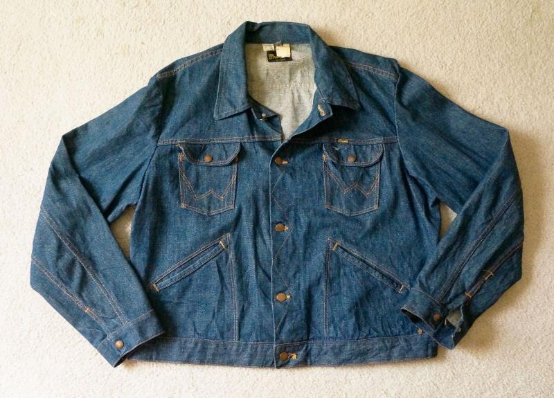62. Классическая оригинальная джинсовая куртка Wrangler 136MJ Black Label, сделана в конце 60-х начале 70-х годов 20 века, made in USA, 100% хлопок, цвет Dark Blue (тёмно-синяя), материал Broken twill(елочка), двойные швы на рукавах, сделано в США. Четыре кармана. Медные пуговицы. В настоящее времени уже не производится.