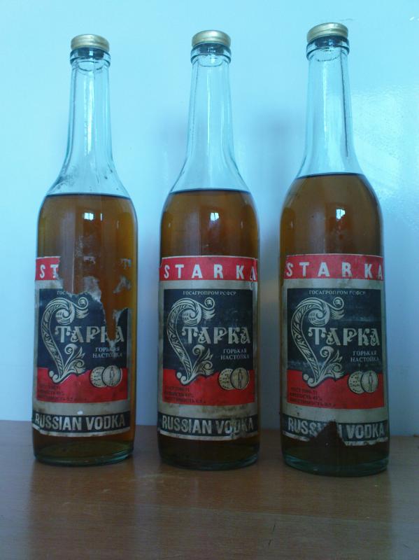Есть настойка горькая СТАРКА, 89 - 93 г. Сохран отличный, пьется весьма приятно. Крепость 43. Находится в Уфе, могу отправить по РФ. Цена 1000 рублей за бутылку, ес кому интересно пишите на azarak666@mail.ru