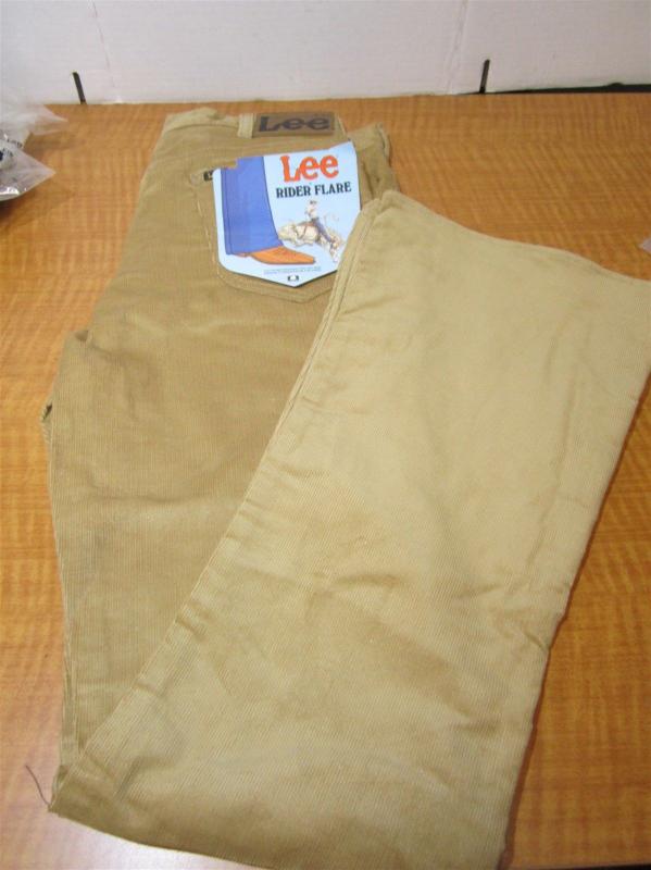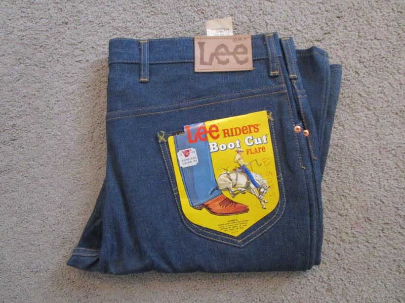 169. Абсолютно новые редкие джинсы Lee riders regular feet boot cut, 40х32, сделаны в начале 70-х, тяжелый левосторонний 100% cotton 14OZ, молния Talon made in USA, заклепки LЕЕ(большое "Е"), кожаный патч, Union Made TAG с внутренней стороны правого переднего кармана, обметка внутренних швов - старый оверлок, желтая нитка. Made in USA - old stock