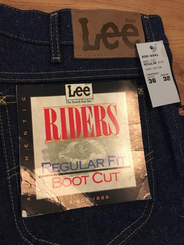 184. Абсолютно новые джинсы Lee riders regular feet boot cut, 36х32, сделаны в США в середине 80-х, тяжелый 100% cotton 14OZ, молния Lee - made in USA, печать Union Made, заклепки Lee, кожаный патч. Made in USA - old stock