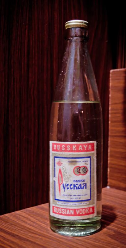 8. Водка Русская 40% 0,5 л., ГОСТ 12712-80, пробка "бескозырка" надпись *ТУЛА ЛВЗ*, на этикетке сзади 181192390, жидкость в бутылку на 5 мм выше этикетки.