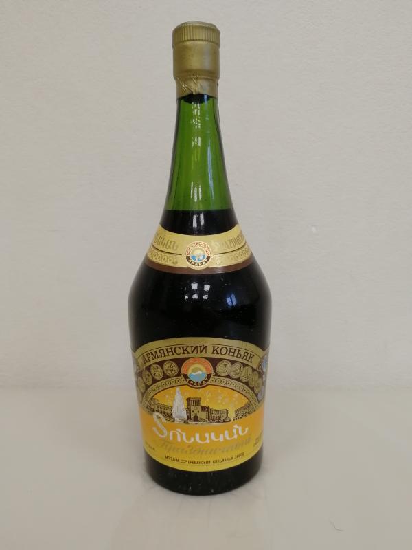 Добрый день. Подскажите пожалуйста сколько стоит вот такой коньяк: Арарат праздничный : крепость 42%, вместе. 0.75, 15 лет выдержки. Гост 13741-78. Мпп армия. ССР Ереванский коньячный завод. Бутылка зелёная, крышка запечатана фольгой. На дне : NADE IN USSR 7.