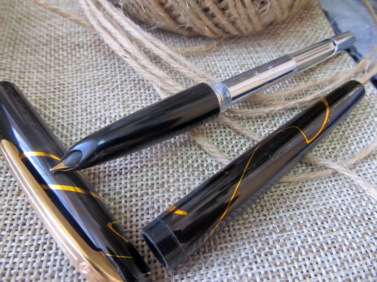- Вы любите легкие невесомые ручки? Любите скромность и классику? - Тогда этот экземпляр ручки именно для Вас! Винтажная перьевая ручка Golden Star 535 производства 70-80 годов в Китае. Внешний вид идеален, состояние корпуса новое, пипетка в отличном состоянии. Пишите легко Ваши письма! Перо закрытое F, сталь. Корпус - гладкий пластик серого цвета. Система заправки - пипетка. Подача чернил умеренная. Длина в колпачке - 13,8 см, без колпачка - 12,6 см, толщина - 1,1 см. Вес в колпачке - 10 гр, без колпачка - 6 гр. Колпачок "под золото", без резьбы, с внутренними зажимами для надежного крепления на ручке. Купить перьевую ручку Golden Star 535 можно в Екатеринбурге. Цена 1750 руб. Доставка в любой город 300 руб. Отслеживание посылки по номеру почтового идентификатора. Надежная упаковка гарантирована. ПИШЕМ КРАСИВО ВСЕМ МИРОМ! |