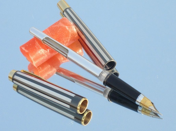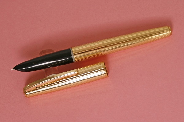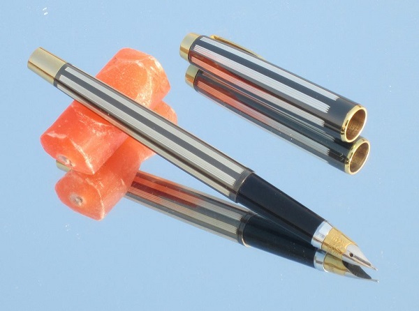Одна из самых удачных и популярных моделей фирмы. Произведена в 80е годы. В наличии 4 цвета - бежевый, зеленый, бордовый и черный. Открытое перо - сталь с иридиевым наконечником, F. Пишет легко и гладко. Система заправки - пипетка. Длина в колпачке - 14,1см, длина без колпачка - 13,3см, толщина - 1,1см. Вес в колпачке - 19г, вес без колпачка - 12г.