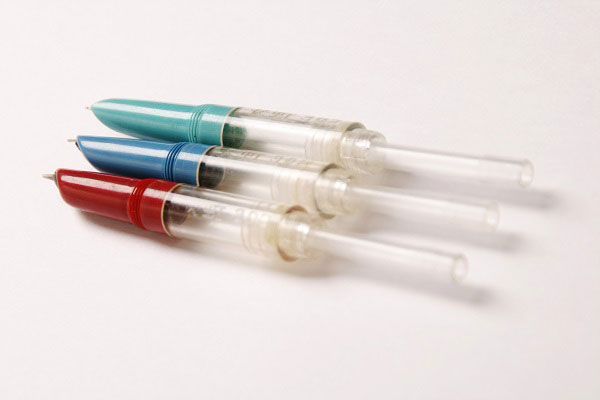 В наличии 3 цвета — зеленый, черный и бордовый. Заправка — пипетка. Перо закрытое — FM.