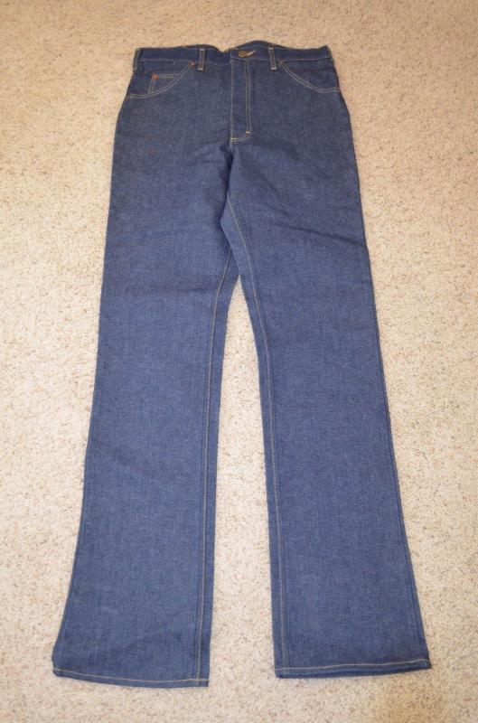 Крайне редкая модель середины 70-х. Абсолютно новые джинсы Wrangler 910DEN Rigid, размер W36 L32, made in USA, старые запасы - old stock. Темно синие(индиго), хлопок 100%, жесткие(Rigid), молния IDEAL, кожаный лейбл Wrangler на заднем кармане, медные клепки на задних и передних карманах, плотность ткани 14,75OZ, ткань елочка(broken twill), прямые, бедро свободное, посадка высокая. Размеры: американский W36L32. Полуталия 46см, длина по внутреннему шву 83см, длина по внешнему шву115см, ширина штанины внизу 22 см. Цена: 8000руб.