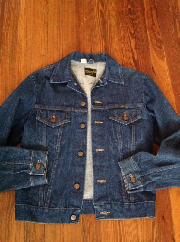 Классическая оригинальная винтажная джинсовая куртка Wrangler Black Label 70-х годов 20 века, made in USA, 100% хлопок, цвет Dark Blue (тёмно-синяя), материал Broken twi(елочкаl, сделано в США. Два кармана. Медные пуговицы. В настоящее времени уже не производится.