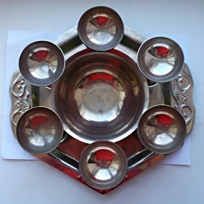 Продам сервиз посвященный олимпиаде 1980 года металл,чеканка производства Армянская ССР,в идеальном состоянии без сколов потертостей все время стоял для красоты.Размеры рюмочки высота 85 мм,конфетница высота 70 мм,поднос 290 х 285 мм.Предложите цену.