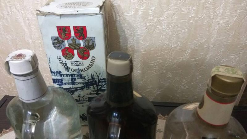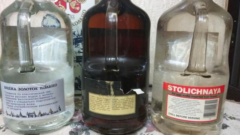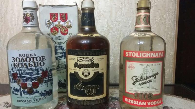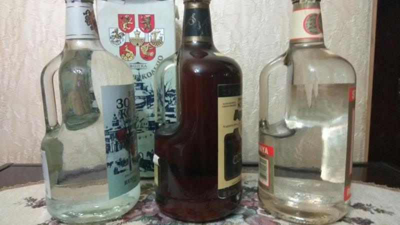 Алкоголь 80-ых годов, все бутылки одинаковые(графин с ручкой), объёмом 1.75 литров. Водка - экспортный вариант.