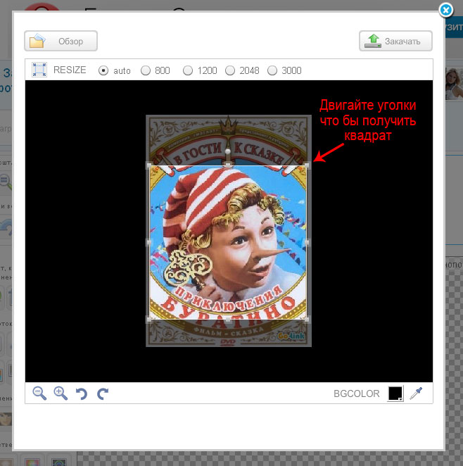 4. Когда изображение загрузится, ничего уже кадрировать не нужно. Только нажимаем кнопку "Закачать"