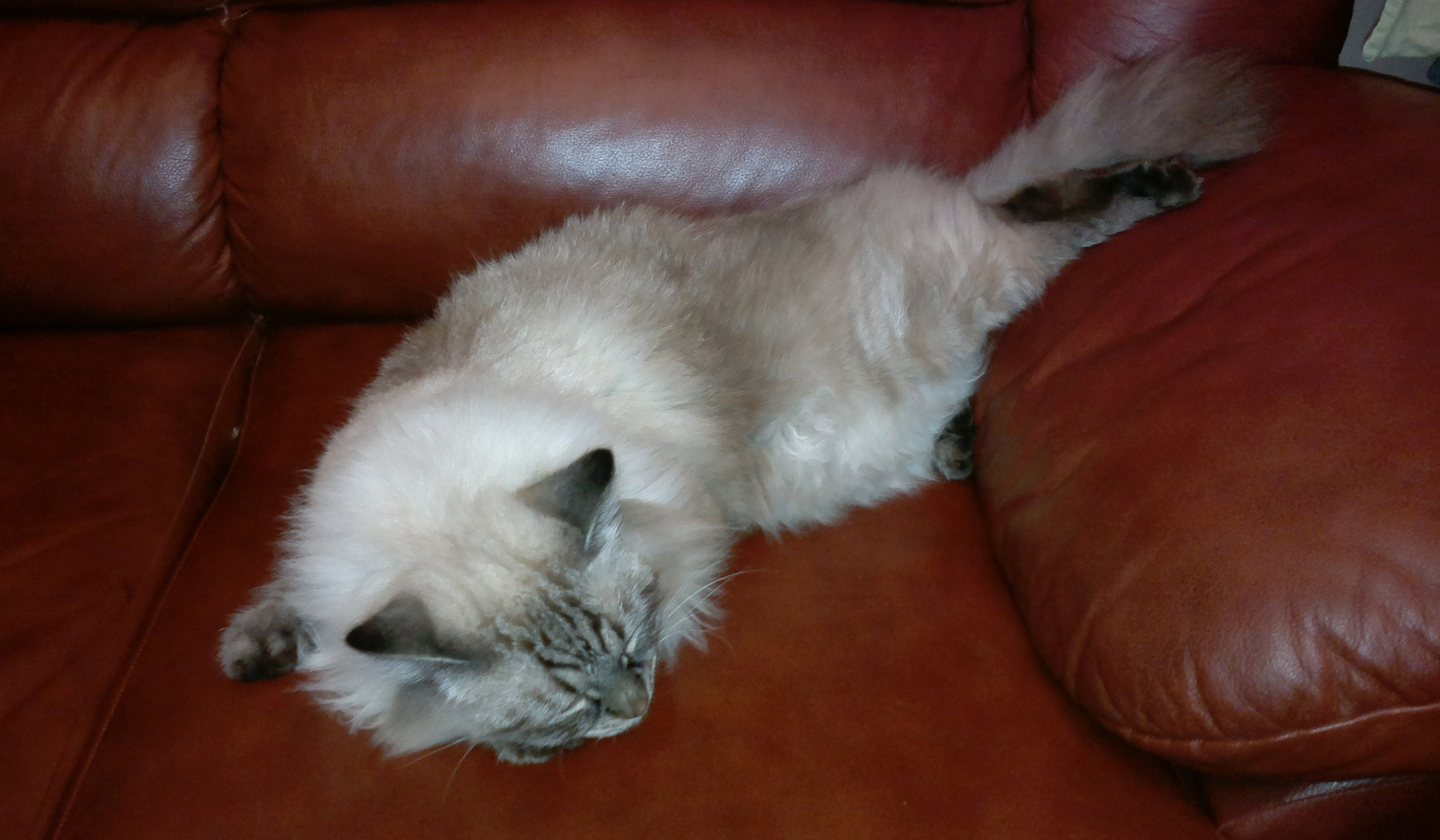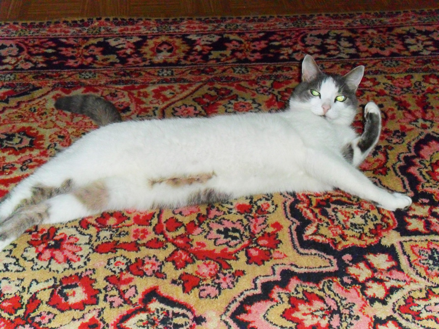 А это наш Матраскин,... или мы его? Чёрт разберёт. Т.к. не мы его нашли, а он нас. Просто, однажды появился под дверью и стал ждать ням-ням, и постепенно (как культурный кот, очень постепенно) "вселился" в нашу квартиру. Но чтобы мы много о себе не думали, вечером, всегда, уходит, и появляется утром, ну или днём, чтож дела, и ооочень удивляется если еда его не ждёт, а он должен её ожидать. На фото: посленочной отдых, ну и понятно, "ребята вы, что офонорели, уже, уже 18 часов утра, а я не на одном зубе" "Времена не выбирают, в них живут и умирают" Ищу Автора.