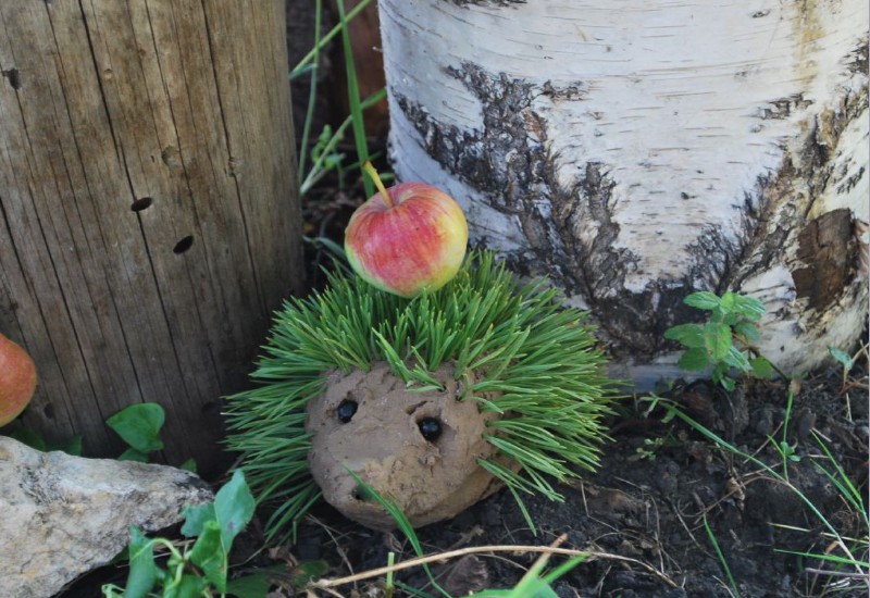 Ещё одно творение. Называется "Глиняный ёжик с еловыми иголками и настоящим яблоком на спине, который жил у меня на даче под яблоней этим летом". Вот. ;;)