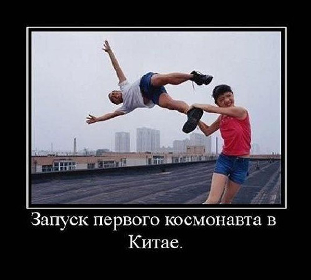 Вчера состоялся запуск первого китайского искусственного спутника Земли. Подготовка к запуску длилась четыре года. Из них один год строили сам спутник, и три года натягивали рогатку. Вчера во время неудачного запуска первого китайского космического корабля с космонавтом на борту погиб четыре тысячи один человек. Из них: один космонавт и четыре тысячи кочегаров. Не плюй в прошлое, иначе будущее плюнет в тебя.