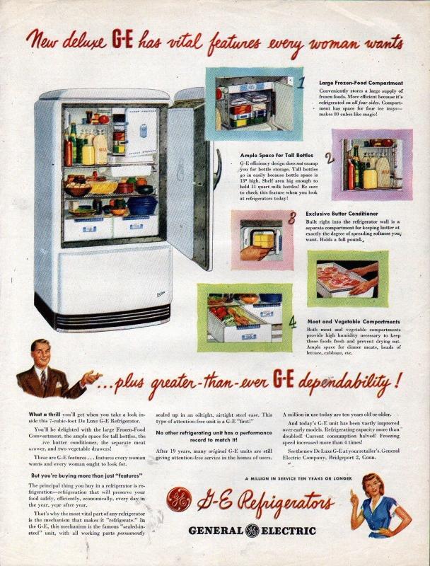достался мне вчера холодильник GE 1946 года рождения. Рабочий