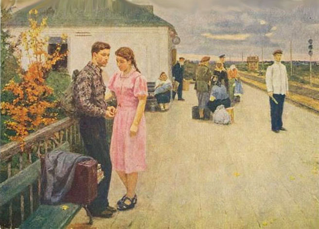 Спасибо, rik, за понимание! Сам 30 лет уже как женат. А насчет картинок... - ну, прямо, все догадливыми оказались.... - ничего не скроешь! ![]() П.С. А меня из картинок почему-то особо трогает "На перроне". Очень понятно это чувство расставания, наблюдал не раз. Да, картинки незамысловатые, но ведь и люди такие были в основной своей массе - бесхитростные, «без двойного донышка», как я это называю. Добавлено спустя 4 часа 52 минуты 13 секунд: Еще несколько рисованных образов добавлю: Картина К.Петрова-Водкина. Открытка Шильников С. Встреча. Открытка "Одинокая бродит гармонь..." (Какие же чувства без музыки? )Последний раз редактировалось Vovka 25 мар 2012, 05:50, всего редактировалось 1 раз.