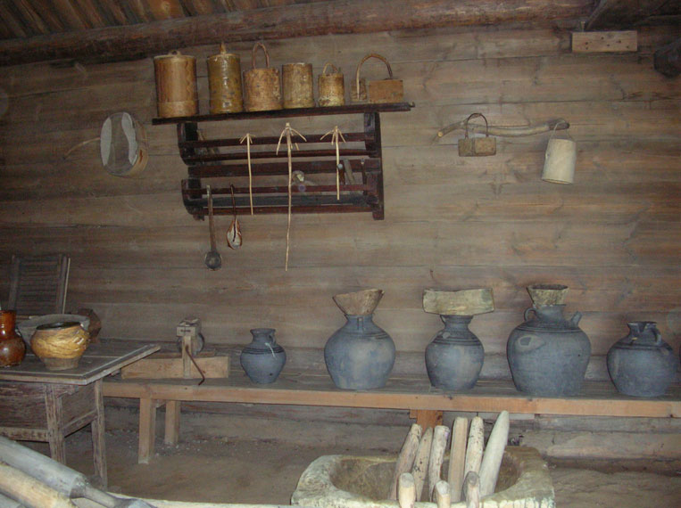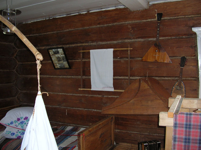 На нижнем снимке слева на палке "зыбка" ("люлька"), накрытая пологом, висит? Я помню, в таких младенцев качали. Видел такую у кого-то в доме, когда сам совсем маленький был.