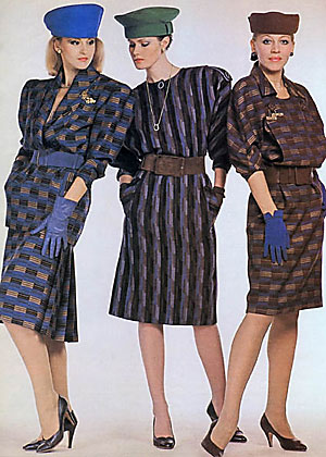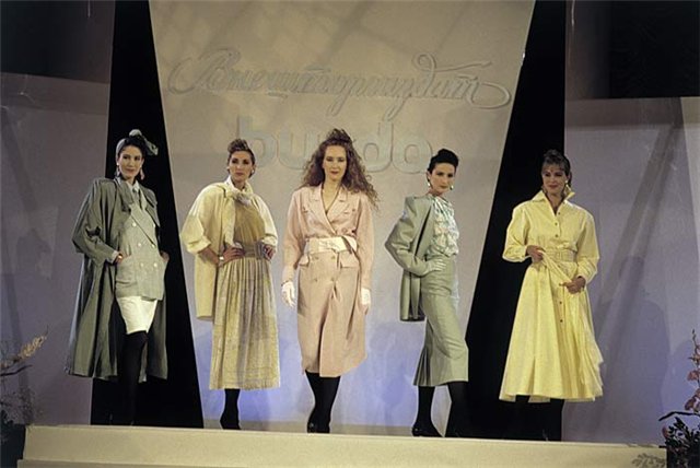 О, мода! Это вообще отдельная тема. А особенно в советское время, время тотального дефицита. Тогда большое значение придавалось тому, как ты одет. Потому что одежда была своего рода показателем достатка и возможности иметь блат. Это сейчас никого не удивишь, когда какой-н. миллионер разгуливает в кедах и простой футболке, причем не особо заморачиваясь брендами. Особенно вспоминаю свою юность, время перестройки. Тогда замечалась в одежде каждая мелочь, вплоть до того, сколько пуговок на манжете пришито, если больше обычного, то это уже казалось чуть ли не вызовом. Очень моден был яркий, даже кричащий макияж. Это чрезмерное количество румян на щеках, он тогда назывался "розовый шик", совершенно дикие расцветки теней от глубокого фиолетового до яркозеленого. При этом густая подводка для глаз и розовая помада. Лицо напоминала кукольную маску. Общую феерию красок завершала совершенно чумовая прическа - прошедшие через химию волосы начесанные в какой-то стог сена. И это считалось круто. Обязательно ажурные колготки черного цвета. Черная кожанная (чаще из кожзама) миниюбка и олимпийка от финского костюма. Все, можно идти на дискотеку! )))