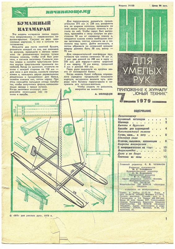 Мы тоже выписывали ЮТ с приложением. Когда получили этот номер, папа велел его сохранить. Сказал как выйдет на пенсию будет учиться корзины плести - любитель он был "лесов, полей и рек..." и нас все время таскал на природу (рыбалку, грибы, ягоды. Но ... до пенсии не дожил (рак), а журнал так и лежит.