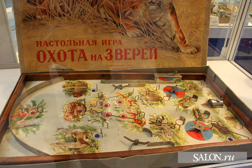 А ещё мне нравились настольные "бильярды". Там на деревянном поле много "гнёздышек" для металлического шарика, которым ты должен попасть "выстрелом" из ... (не знаю, как это "орудие" типа шпингалета называется) и в какое гнёздышко он попадёт - столько очков на твой счёт идёт. Вот, примерно, такое: