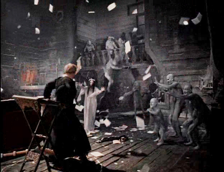 Я когда смотрел Вий на ТВ, я уже был взрослый, но когда Панночка летала в гробу и страшные рожи корчила, тут я, сидя на диване, ноги с пола убирал, и сидел смирно и тихо. |