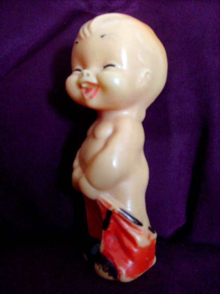 Я помню эту игрушку, у меня у племянницы была такая. Только, по-моему, она была пластиковая. Уже в то время (80-е гг.) эта игрушка была дефицитом, почему-то все гонялись за ней. Может из-за того, что она выглядела вызывающе, как знаменитый "maneken pice" в Брюсселе? И - представьте себе! - где-то видел недавно такую! Скорее всего на каком-нибудь мини-рынке. В интернете такая (фото) попадалась. Поищите еще - найдете. Не плюй в прошлое, иначе будущее плюнет в тебя.