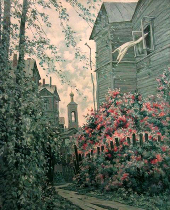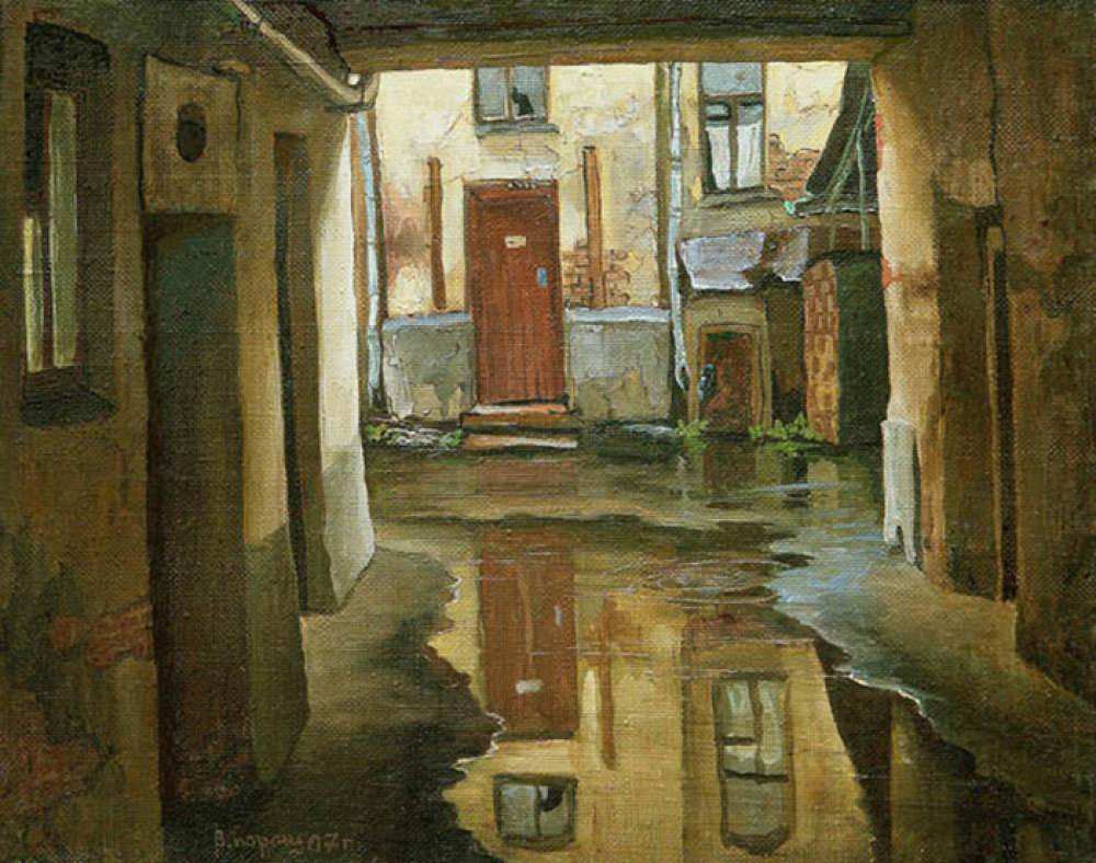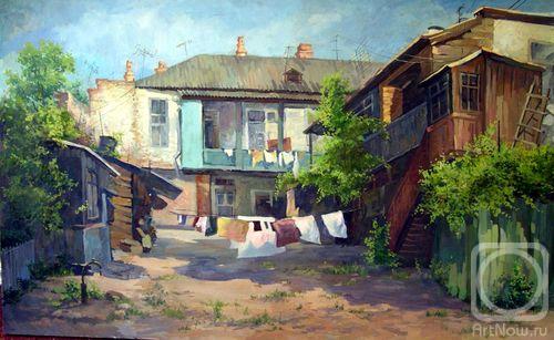 Мой первый двор - двор большого старинного частного дома. И сам двор старинный, со сложной планировкой, разными строениями. Двор с высокими резными воротами, зеленью, мощеный плоскими каменными плитами. И у друзей - такие же примерно дворы. Обычно мы собирались у кого-нибудь в таком дворе (когда взрослые были на работе, потому что иначе отправили бы сразу на улицу, чтоб не шумели возле самого дома) и играли в самые разные игры. А тихая улица, упирающаяся в реку, заросшая травой, была чем-то вроде открытого продолжения таких дворов нашего детства.