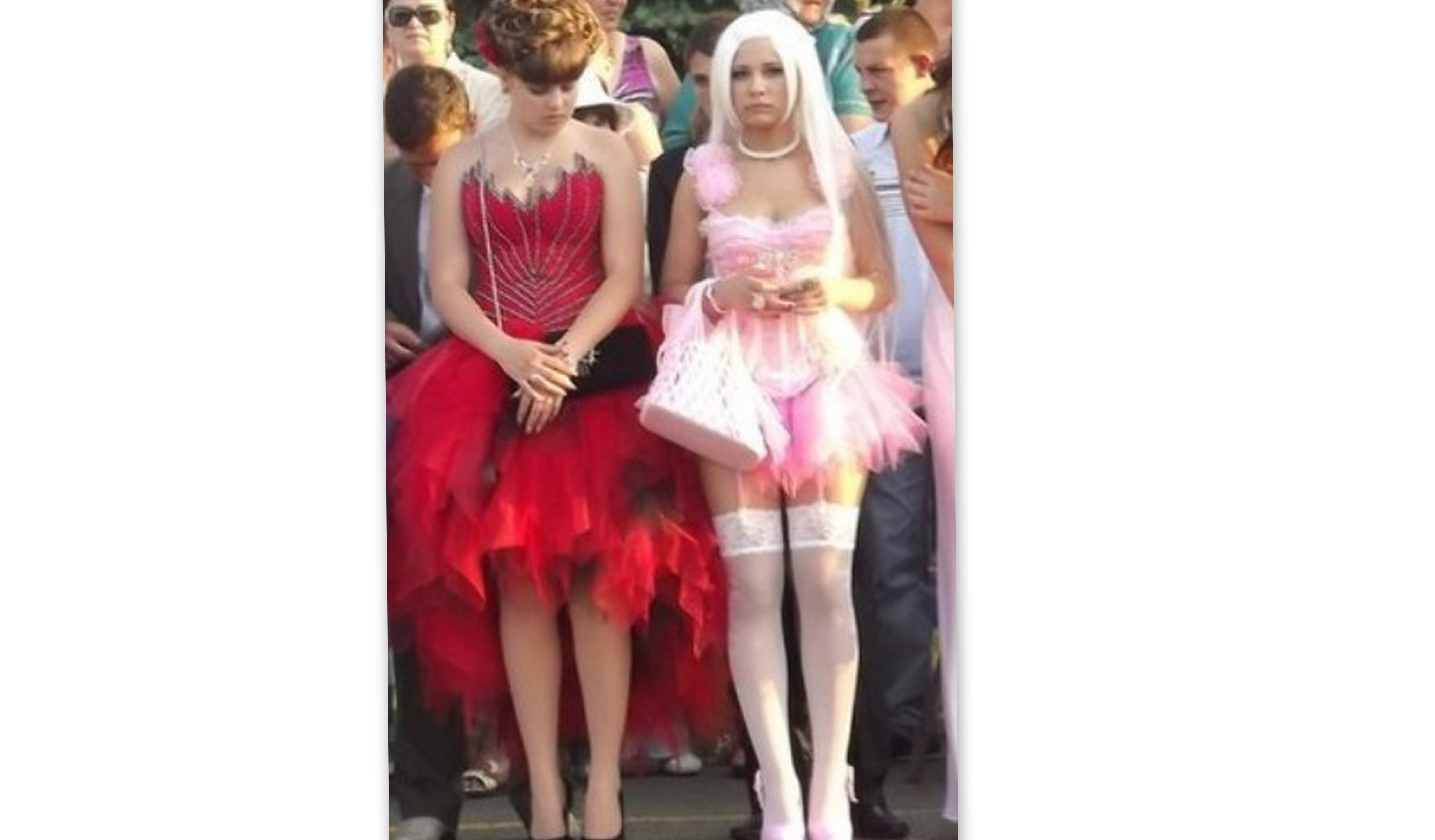 В вашей школе ухитряются, а в другой даже не пытаются. Как вам это?Правда, это не повседневная школьная одежда, а праздничная, а точнее - "бальные" наряды выпускниц. Не знаю, как вам, а мне почему-то грустно от таких "пейзажей". Честно скажу: сдула с другого форума, где этот вопрос затронулся слегка, но, как сказал один тамошний (30летний) форумчанин: "Мракобесие!" И я с ним согласна. Что не запрещено, то - разрешено. |