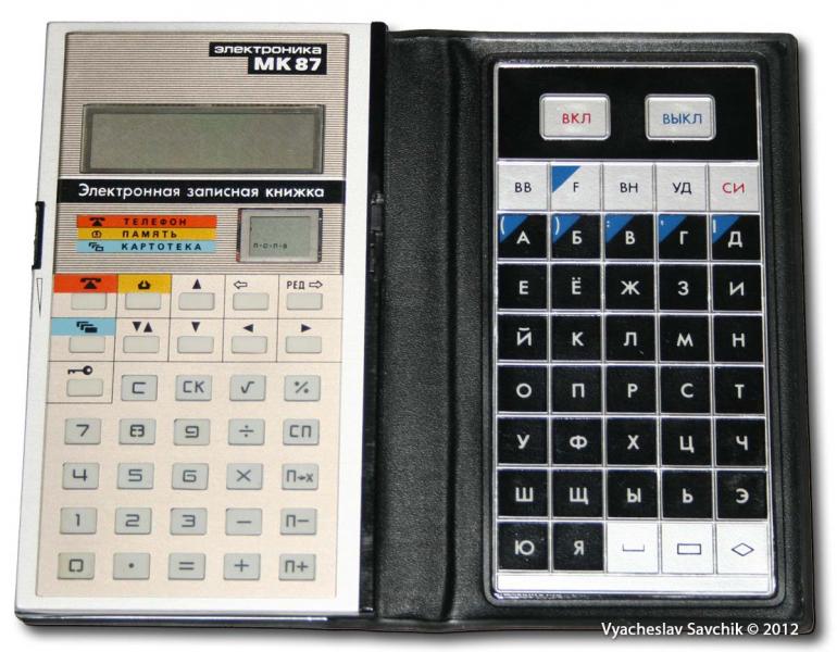 "Электроника МК 87" — первый отечественный микрокомпьютер индивидуального пользования с автономным питанием и энергонезависимой памятью; первый микрокалькулятор с электронной записной книжкой и электронными часами.