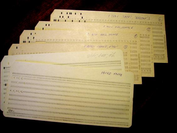 алена писал(а): :)) И нас тоже в техникуме водили на экскурсию ЭВМ смотреть - был у нас такой предмет информатика. Я правда, сейчас совершенно не помню, чему нас там учили, но запомнилась эта ЭВМ, точно, размером с комнату, и коричневые перфокарты, дырочки на которых должны были совпадать с чем-то там в машине.
