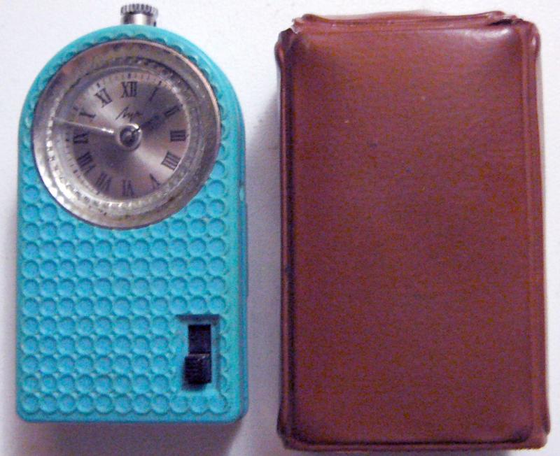 Карманный будильник "Луч". Работает на батарейке (но подсветки нет). Цепочка с карабинчиком не нашлась, увы. Справа футляр.