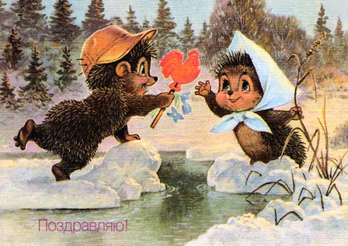Помните праздники в детстве? С чего они начинались? Да с открыток же! С открыток в почтовом ящике, которые начинали приходить примерно за неделю до праздничного дня. К нам в дом самой первой всегда приходила открытка от дядюшки из Калининграда. Не надеясь на скорость почты, он отправлял свои поздравления очень заранее, почти за полмесяца.)) Достав открытку из почтового ящика и даже не успев прочитать её, я стремглав неслась, перепрыгивая через две ступеньки, к своей квартире, и влетала в нее с воплем: "Мама, от дяди Илюши уже открытка пришла, давай скорее деньги! Ой, не успеем же всех поздравить..." Мама отсчитывала мне энную сумму, мы кооперировались с дворовой командой, выбирали день и совершали налет на все близлежащие почтовые отделения и киоски "Союзпечати". При этом существовало между нами неписаное правило: открытку, которую выбрал один, другой покупать не имел никакого права. Поэтому и приходилось наматывать порой километры, чтобы набрать необходимое количество симпатичных картинок. Родня у нашей семьи большая, покупать всем одинаковые открытки тоже считалось "некомильфо". Поэтому "открыточная эпопея" занимала нередко не один день. Подписывала открытки обычно мама. А мне, после того, как я научилась писать, доверяли надписать адрес. Ох, как же я старалась... А больше всего любила, когда у папы вдруг выдавалось свободное время и он мог освободить маму и заняться этим сам. Он подходил к этому вопросу очень творчески. В его поздравлениях всегда присутствовал юмор, он учил, что поздравление должно быть максимально искренним и очень ориентированным на личность человека. "Если уж берешься писать поздравление, пиши его от души, представляя конкретного человека," - так он говорил. С тех самых детских пор так и отношусь к этому, может потому современные открытки с заготовленным типографски отпечатанным текстом, не трогают и символом праздника не воспринимаются. А какое удовольствие было получать открытки! Иногда это был почти единственный способ узнать что-то о далеком родственнике или друге семьи. Помню присланные другим дядюшкой - военным , мотавшимся по дальним гарнизонам, где иногда и почта-то существовала как нечто фантастическое— исписанные бисерным почерком открытки, когда текст, не умещавшийся на поле, для него отведенном, продолжался вокруг адреса получателя и даже в микроскопическом поле адреса отправителя. Ну, не любил этот дядюшка письма писать, а может некогда было? Но в предпраздничные дни пытался удержать ниточку родственной связи и писал много и подробно. А в конце всегда приписывал для меня: "Лялька, не будь лапшой!" Один раз даже на самой картинке открытки это написал, чем меня позабавил от души.Самые, как теперь говорят, "культовые»"открытки из детства — конечно же открытки Владимира Ивановича Зарубина. Абсолютно узнаваемые добродушные медвежата, лукавые зайчата, улыбчивые ёжики, румяные детишки — у каждого из нас в детстве были стопки работ этого доброго мастера почтовой миниатюры. Они на самом деле создавали празднично-смешливое настроение. Сейчас за этими открытками филокартисты гоняются. Несмотря на тогдашние миллионные тиражи, осталось их, видимо не так много. Конечно, открытка — сиюминутное творение, прошел праздник — и нет ее. Какое-то время они, конечно, хранились. Помню бабушка перевязывала стопки открыт