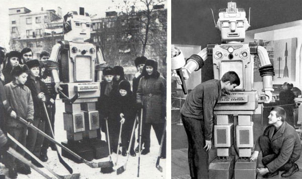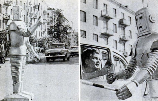 И ведь правда - освоили! Робот-гаишник, Москва, РСФСР, СССР. Лето 1967 года. Робот, которым в 1967 году планировалось заменить сотрудников ГАИ на дорогах для управления транспортным потоком, предполагалось что робот способен выполнять 79 команд и управляться дистанционно. С целью популяризации проекта были напечатаны в журналах эти фотографии, но проект так и остался не реализован. Фото из журнала “Моделист-Конструктор”. |