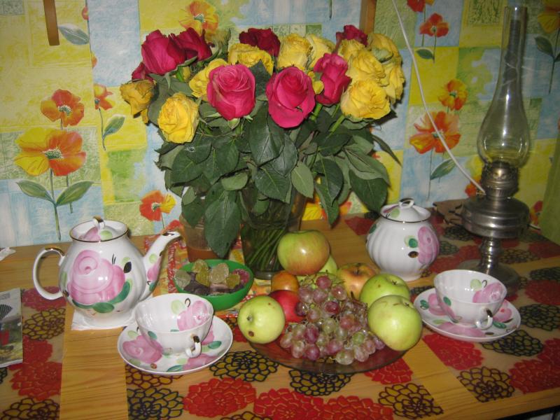 Идея с джезвой очень понравилась. Detka1 , роскошный натюрморт! И чашечки ностальгические, действительно. Наливайте уже чай в них, очень хочется.)) Эх, еще бы к ним советский тортик... Фруктовый... Кто-нибудь такие помнит? Для меня в детстве - самое любимое лакомство было. Внутри варенье, сверху фрукты в желе. Вроде бы простенький рецепт, а повторить почему-то не удается. ...а по субботам чаще всего родители приносили к вечернему чаю бисквитно-кремовый торт с розочками. Обязательно перевязанный розовой ленточкой с бантиком. Когда развязывали ленточку и снимали крышку, дом наполнялся ромовым ароматом... Эх, счастливое детство: каждую субботу праздник был. Потом ленточки сменились шпагатом, ромовая пропитка - ромовой эссенцией... ![]() Добавлено спустя 8 минут 30 секунд: