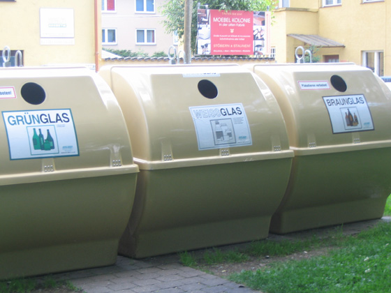 предварительно вымыв, мусорные контейнеры во дворах не открыты "настежь", а имеют "окошечко" прикрытое плоскими резиновыми клиньями - расходящимися в момент забрасывания мусора, и плотно смыкающимися обратно после - ни одна муха не залетит. Даже для стеклотары там обычно стоят рядом три контейнера: для бесцветного стекла, коричневого, и зеленого. Что, нашим МЖК трудно было самим догадаться сделать так же, или хотя бы поучиться у других? Только треплются про экологию.