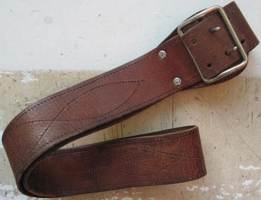 Ремень командирский (ещё не "офицерский"! Слово "офицер" перестало быть синонимом "белогвардеец" только в 1943-м!) от портупеи обр. 1932 года. Похож на более поздние, но - вся фурнитура стальная, а не латунная.
