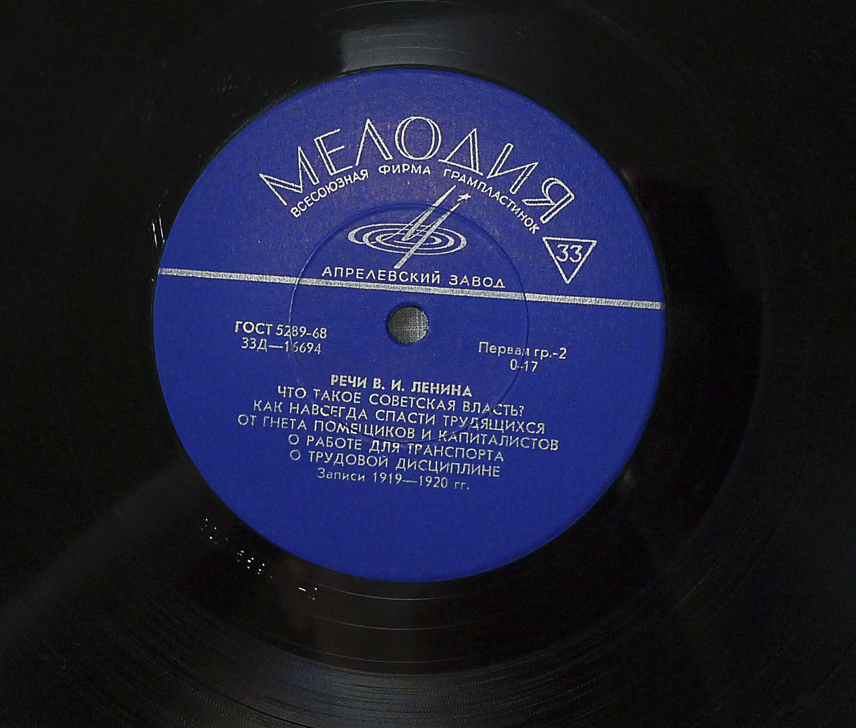 Пластинка с речами В.И.Ленина