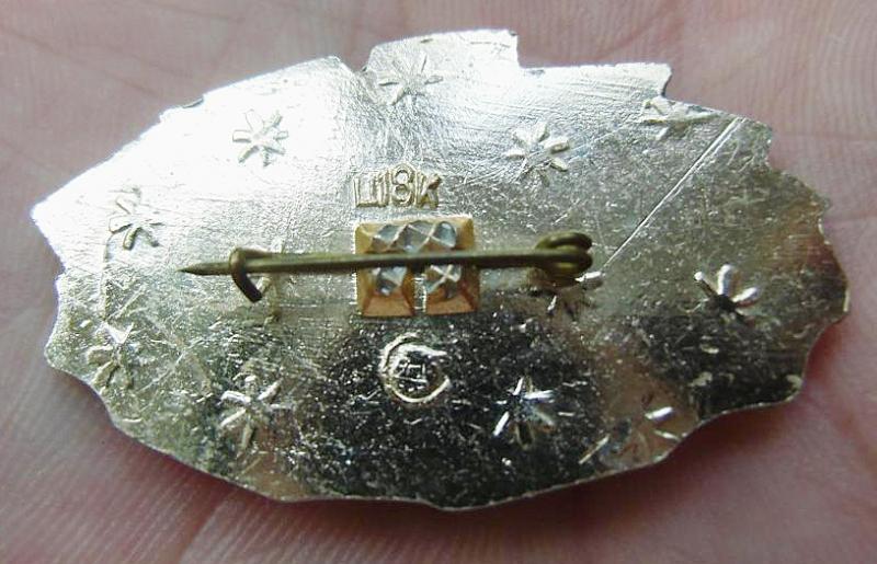 Ранний значок сотрудника на лацкан пиджака. Как видим, изображён силуэт "Ту-104". Довольно маленький - 2,5 ["размах крыльев"] х 2,6 ["длина фюзеляжа"] см.