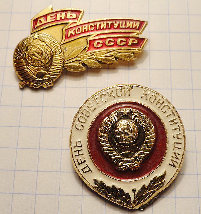 Предлагаю вниманию "культовые" (учитывая выше сказанное) значки Советского фонда мира с привязкой онных к УССР и прекрасному городу Днепропетровску. Представленные значки выдавались ветеранам ВОВ, активно перечислявшим денежные средства на счёт Фонда мира. Ветераны как никто знали цену МИРУ и МИРНОНОМУ БУДУЩЕМУ. Великая им за это благодарность и признательность. В адрес причастних к делу тогдашних госчиновников я бы подобного не сказал. Добавлено спустя 43 минуты 55 секунд: МОЛОДЁЖЬ тоже была в СССР культовой сферой. Ну да Вы и сами знаете о чём я ... А вот и мои значки в эту тему:Добавлено спустя 14 минут 50 секунд: Что до советской потребкооперации, то весьма характерную тогдашнюю её "культовость" мог не заметить разве что слепой. А вот "почётные" знаки (из моих скромных закромов), которыми торжественно поощрялись самые достойные совпотребкооперативщики:Добавлено спустя 14 часов 20 минут 3 секунды: Ну о важности роли Конституции в СССР говорить можно просто бесконечно долго. Основной Закон величайшего государства на планете, как-никак. К слову говоря, нареченная в народе как «Брежневская», третья по счету советская конституция была принята на внеочередной седьмой сессии Верховного Совета СССР девятого созыва 7 октября 1977 г. А вот, извольте, и значки (из моего скромного собрания), посвящённые былому всенародному празднику День Конституции СССР. Пламя души своей, знамя страны своей. Мы пронесем через миры и века!
