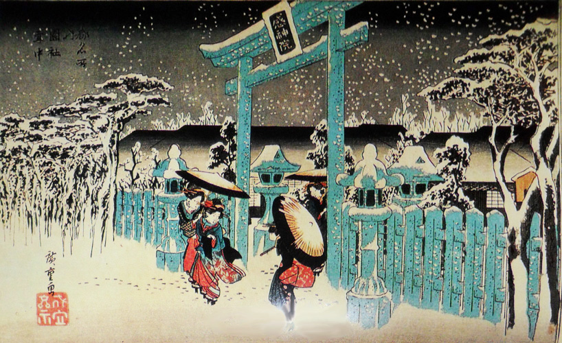 Еще один японец (лень было искать в Интернете, сфоткал прямо из альбома (сканер до сих пор не присоединил - тоже лень ).Андо Хиросигэ (1797-1858). Святыня Гион в снегу. 1834 Не плюй в прошлое, иначе будущее плюнет в тебя.