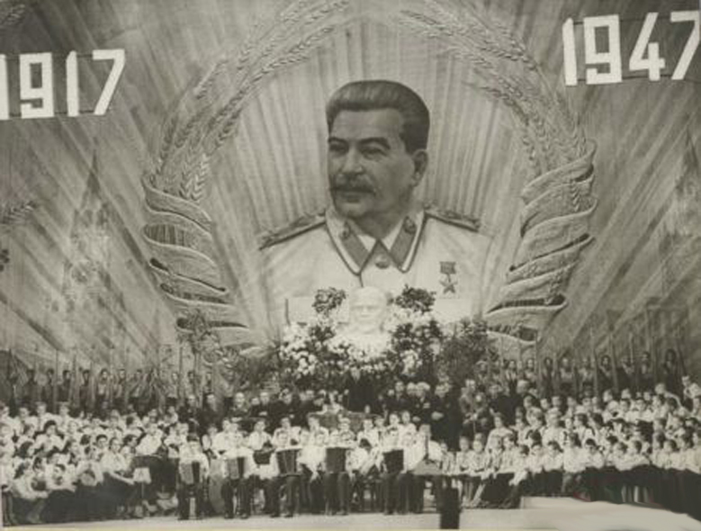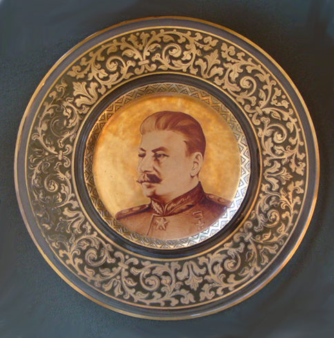 Портрет Сталина на стеклянной тарелке.