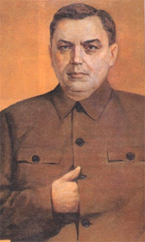 В. Мешков. Портрет С.М. Буденного. 1927г. Е. Кацман. Портрет К.Е. Ворошилова. 1933г. В. Ефанов. Портрет А.А. Жданова. 1948г. И. и В. Голощаповы. Портрет Г.М Маленкова. (Единственный в ближайшем окружении Сталина человек с законченным высшим образованием.) |
