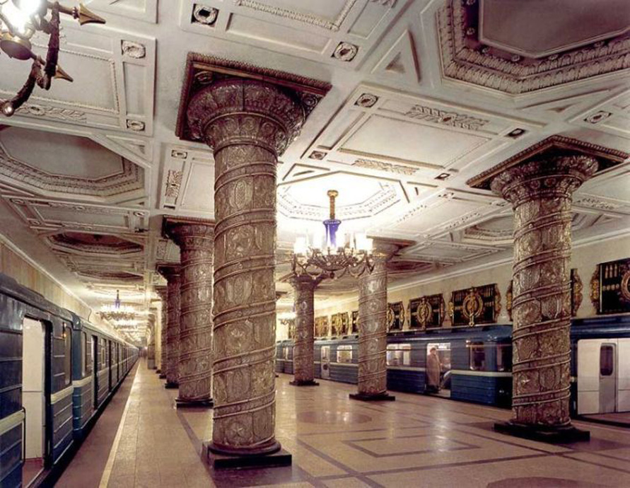 Наоборот!!! Сначала был коструктивизм. То, что здесь - это сталинский ампир. А уж потом началась "борьба с украшательством в архитектуре" и стали появляться безликие коробки и "стекляшки", т.е. функционализм, он же - т.н. "международный стиль" (основатель - архитектор Мисс ван дер Рое). Не плюй в прошлое, иначе будущее плюнет в тебя.